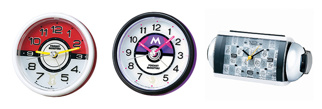 「モンスターボール」「マスターボール」をモチーフにした「目覚まし時計」と、歴代のポケモンをデザインした「大音量目覚まし時計」が発売。