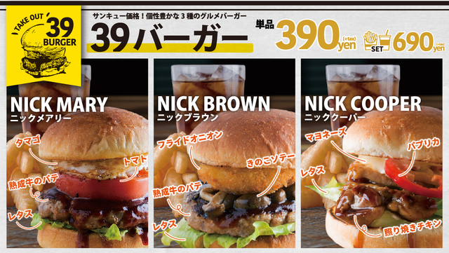 熟成牛使用“グルメバーガー”が衝撃の390円! テイクアウト専門「39バーガー」新登場
