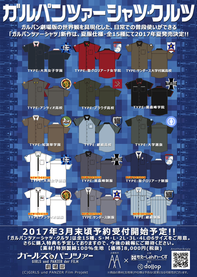 「ガルパン」デザインシャツ第2弾が発売決定、各校の制服やユニフォームをモチーフにした夏服モデル(写真 1/16)