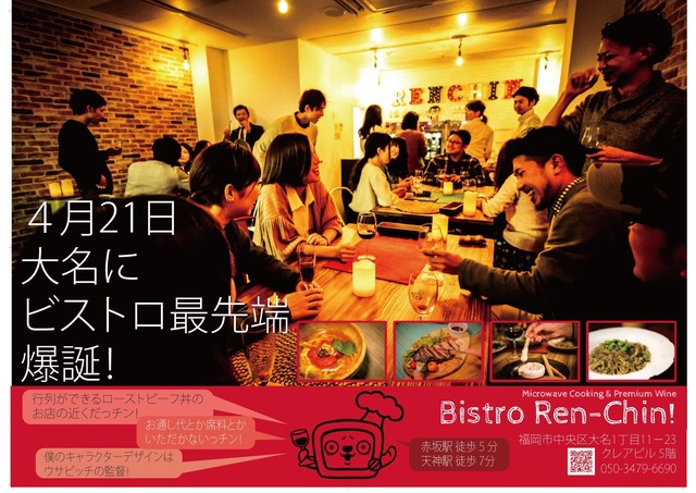 >電子レンジレンチングルメBistro Ren-Chinビストロ オラマチ福岡ワイン