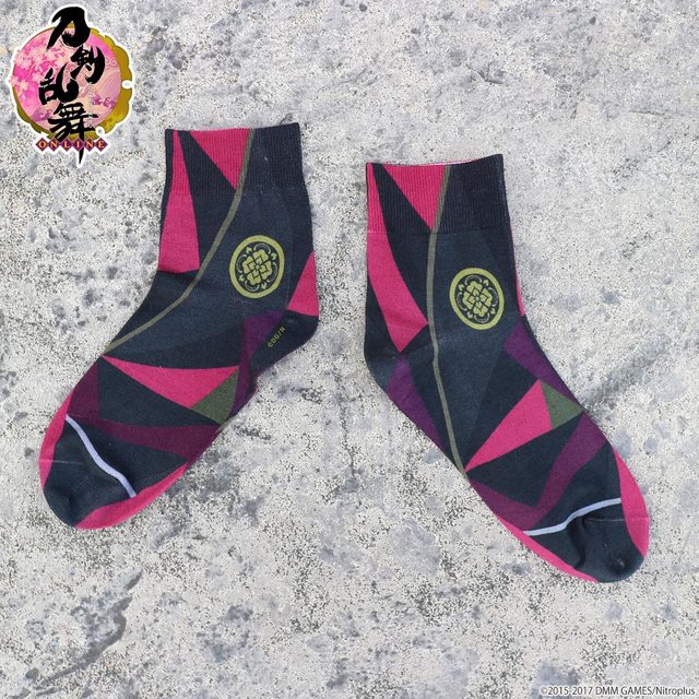 紋をワンポイントに幾何学的なデザイン仕上げ!「刀剣乱舞」三日月宗近、加州清光ほか6振りをイメージした靴下が発売決定