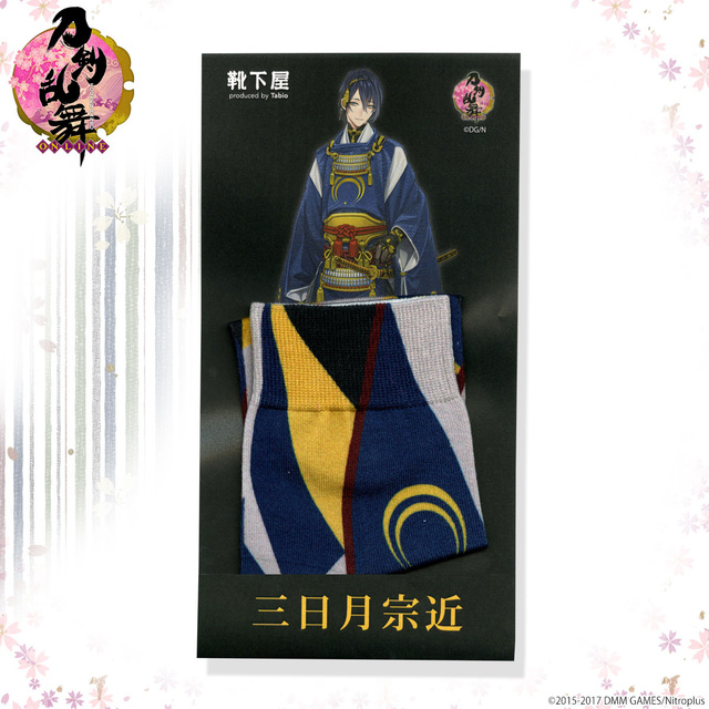 紋をワンポイントに幾何学的なデザイン仕上げ!「刀剣乱舞」三日月宗近、加州清光ほか6振りをイメージした靴下が発売決定
