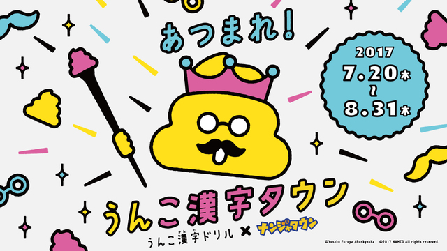 「うんこ漢字ドリル」初の大型イベントが夏休みにナンジャタウンで開催決定! コラボフードや期間限定アトラクションが楽しめる「あつまれ!うんこ漢字タウン」が2017年7月20日(木)~8月31日(木)に開催されます。