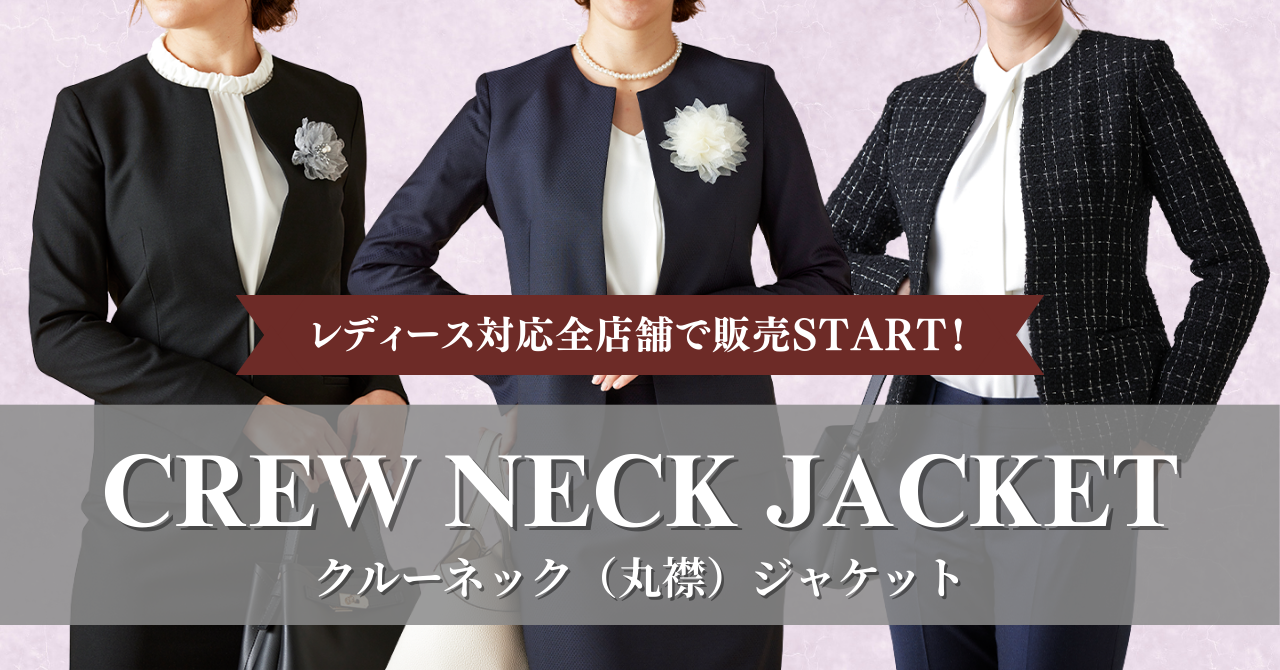 新商品オーダースーツ専門店 グローバルスタイルの「ノーカラークルーネック(丸襟)ジャケット」が、レディース対応全店舗で販売START!卒園/卒業式・入園/入学式・お受験などセレモニーからビジネスまで大活躍。