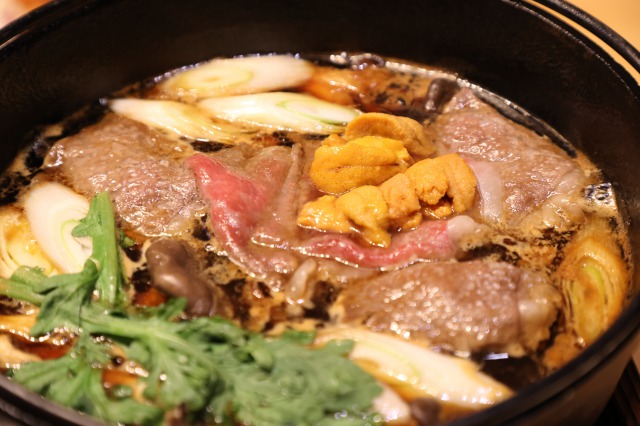 • 台の物の「雲丹と牛のすき焼き」