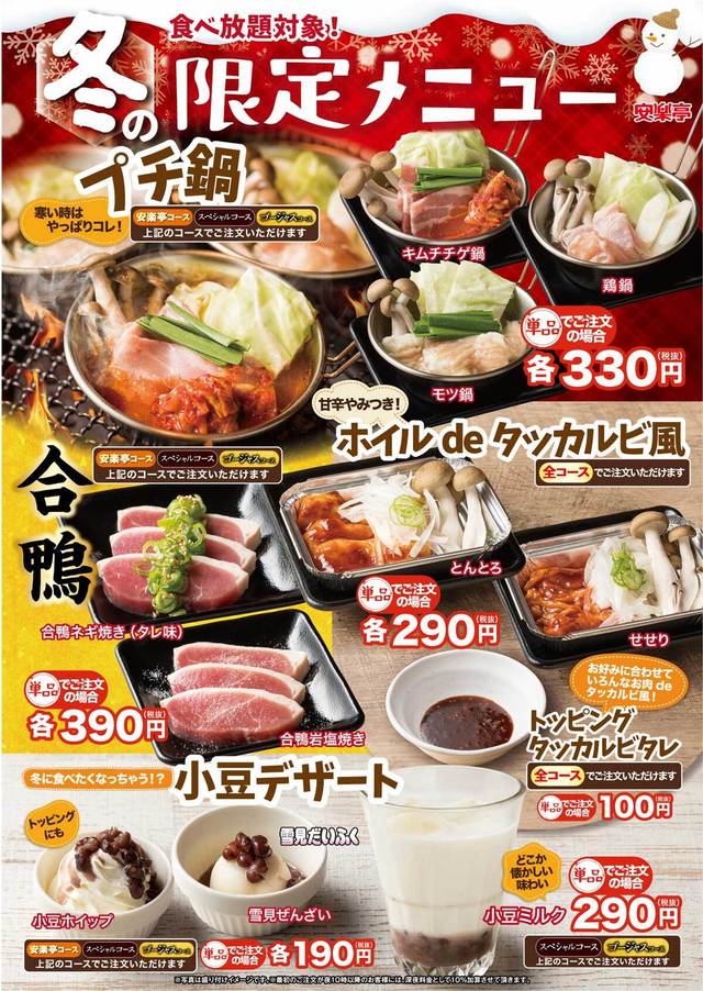 < > 前の写真 記事に戻る 次の写真 X Facebook この記事の写真一覧(全7枚) あわせて読みたい 食べ放題「焼肉の和民」がランチ限定食べ放題がコスパ優秀!全60品・80分でこの安さ♪ ファミレス・大手チェーン腹ペコに朗報!「幸楽苑の“食べ放題”セット」がパワーアップ&全国に拡大♪ 和食500円でこの内容は神!【たらこ&ごはん食べ放題】付き「朝定食」が最高♪ ファミレス・大手チェーン【松屋の豚定】人気定食まさかの販売終了!! 感謝の「お肉最大1.5倍増量」今だけ実施 和食【神コスパ】俺達の「松のや」がやってくれた!量も値段も“ヤバい”夜弁当が発売中!【テイクアウト】 食べ放題え、サーロインをすき焼きに!? 格安「牛尽くしコース」がコスパ最高!【食べ放題もあり】 >安楽亭焼肉食べ放題ランチタッカルビ合鴨デザート