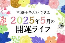 五季十色占いは、風水のロジックと心理学、日本固有の伝統色を合わせた新しい占いです。 5月6日~7月19日生まれの人の5月1日~31日までの5月の開運ライフを占い師、森冬生が指南します。