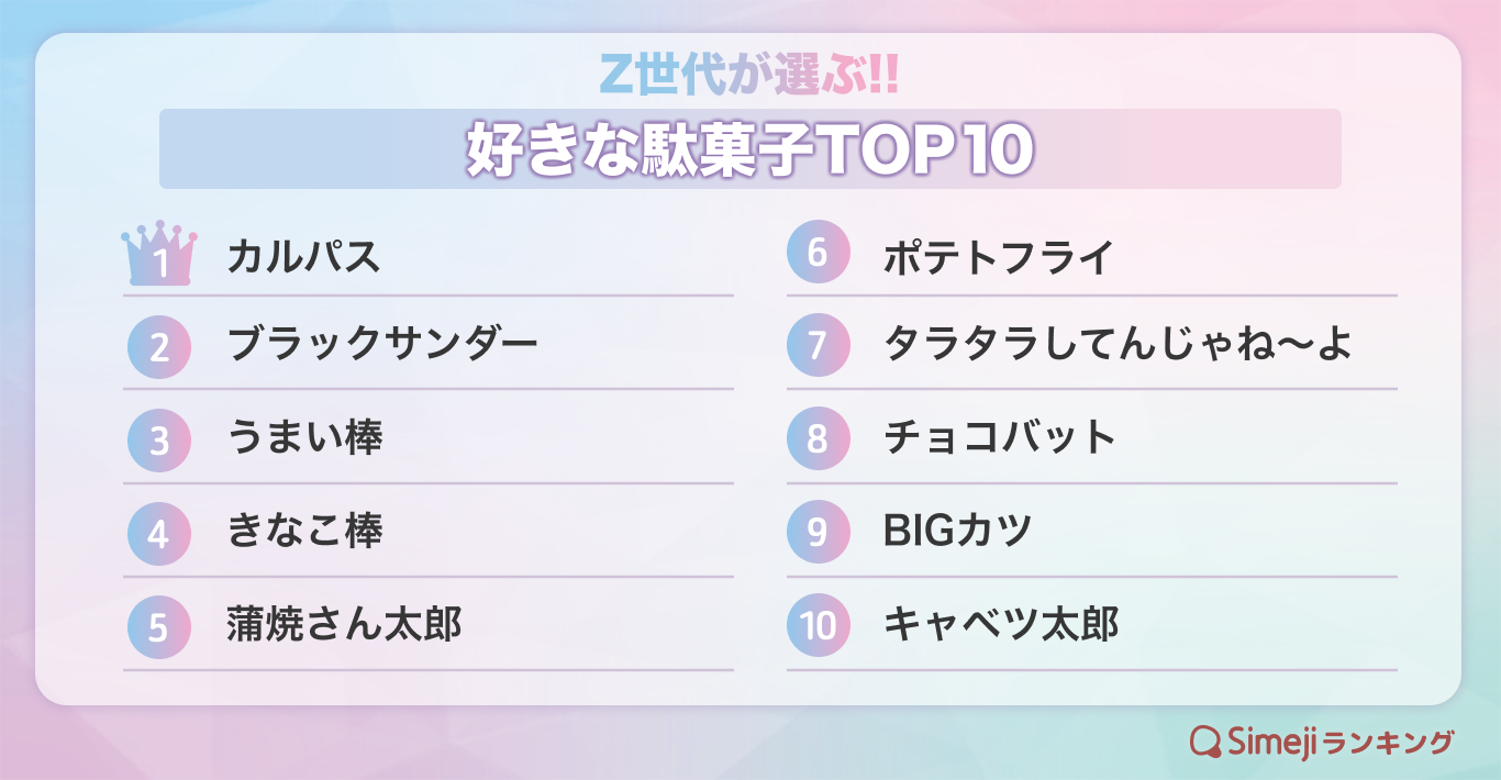 【Simejiランキング】Z世代が選ぶ!!「好きな駄菓子TOP10」