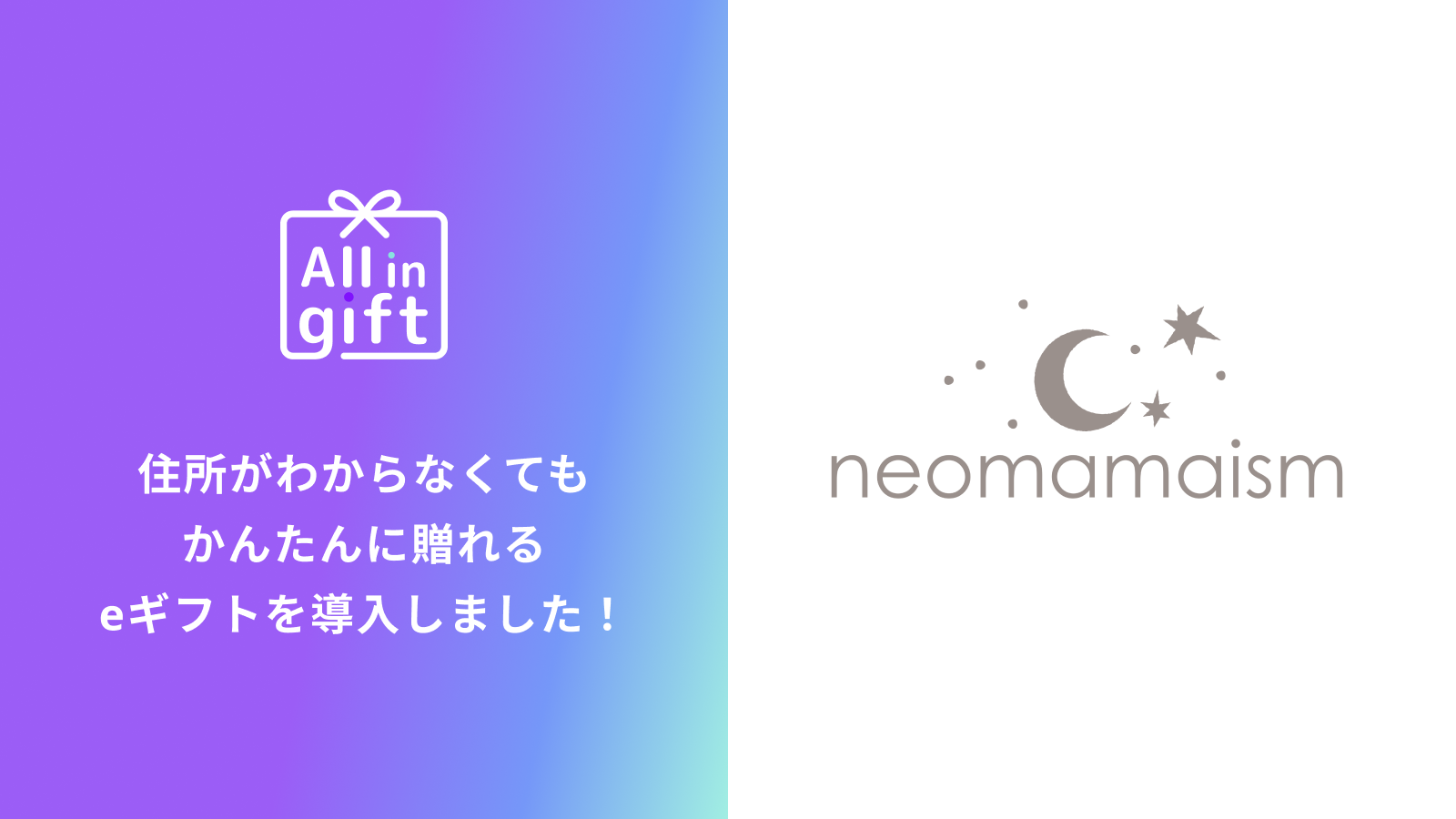 eギフトアプリの「All in gift」、「neomamaism(ネオママイズム)」にて採用