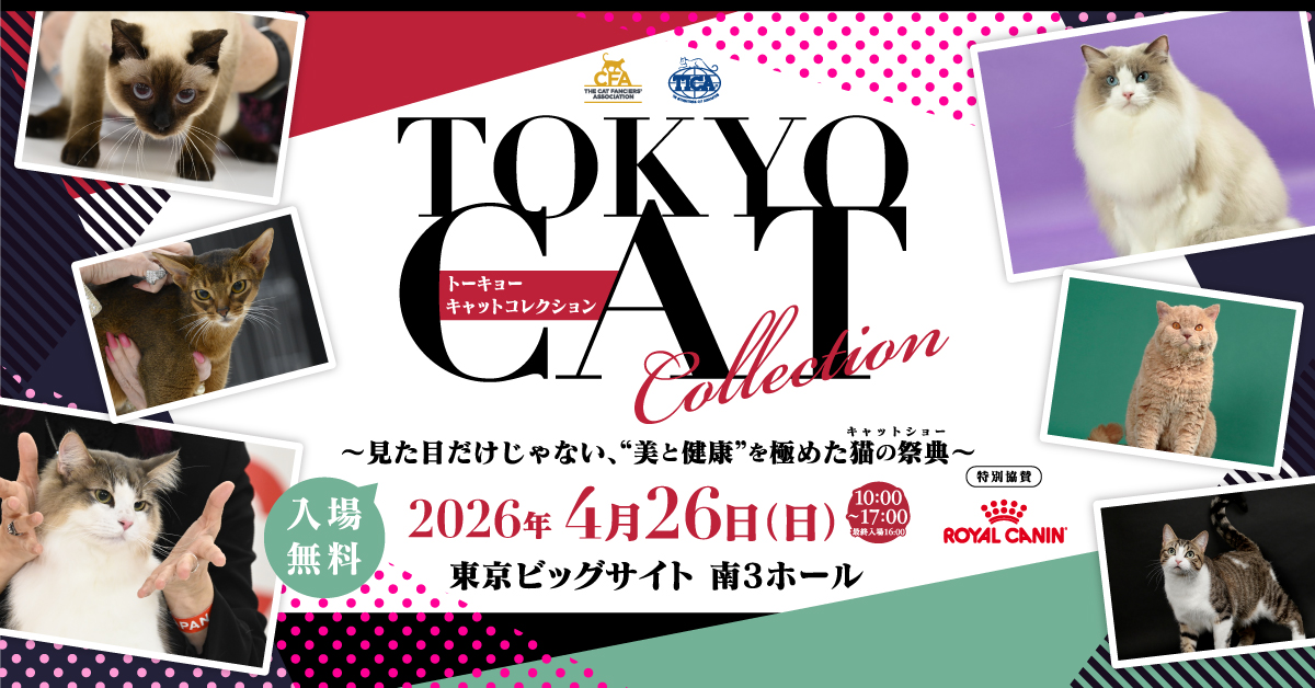 世界を代表する国際的な猫の2団体が参加する日本最大級のキャットショー 「TOKYO CAT COLLECTION」初開催 2026年4月26日(日) | 東京ビッグサイトにて開催