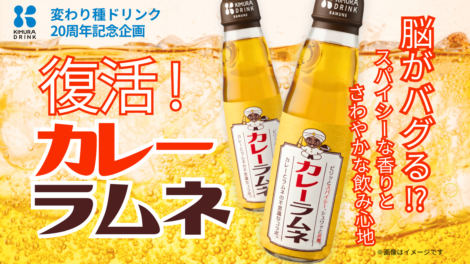 【伝説の"飲むカレー"復活!】木村飲料・変わり種20周年記念 脳がバグる!?「カレーラムネ」が4月3日よりMakuake先行発売