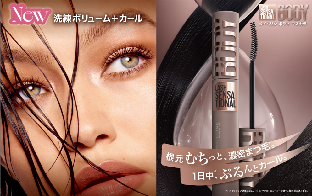 メイベリン ニューヨークから新マスカラ登場。根元むちっと、濃密まつ毛*1 。1日中*2、ぷるんとカール*1 。「メイベリン ボディ マスカラ」 6月8日先行発売、6月20日より順次全国発売