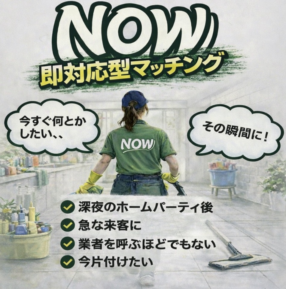 最短15分で家事代行が到着。ウーバー感覚で呼べる「NOW」、即対応型マッチングサービスを開始!