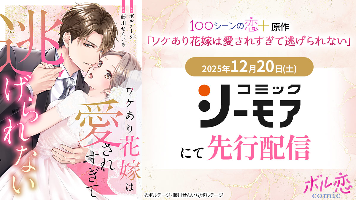 魅力的な旦那様との極甘新婚ストーリーがコミカライズ! 「ワケあり花嫁は愛されすぎて逃げられない」 「コミックシーモア」にて先行配信中 -