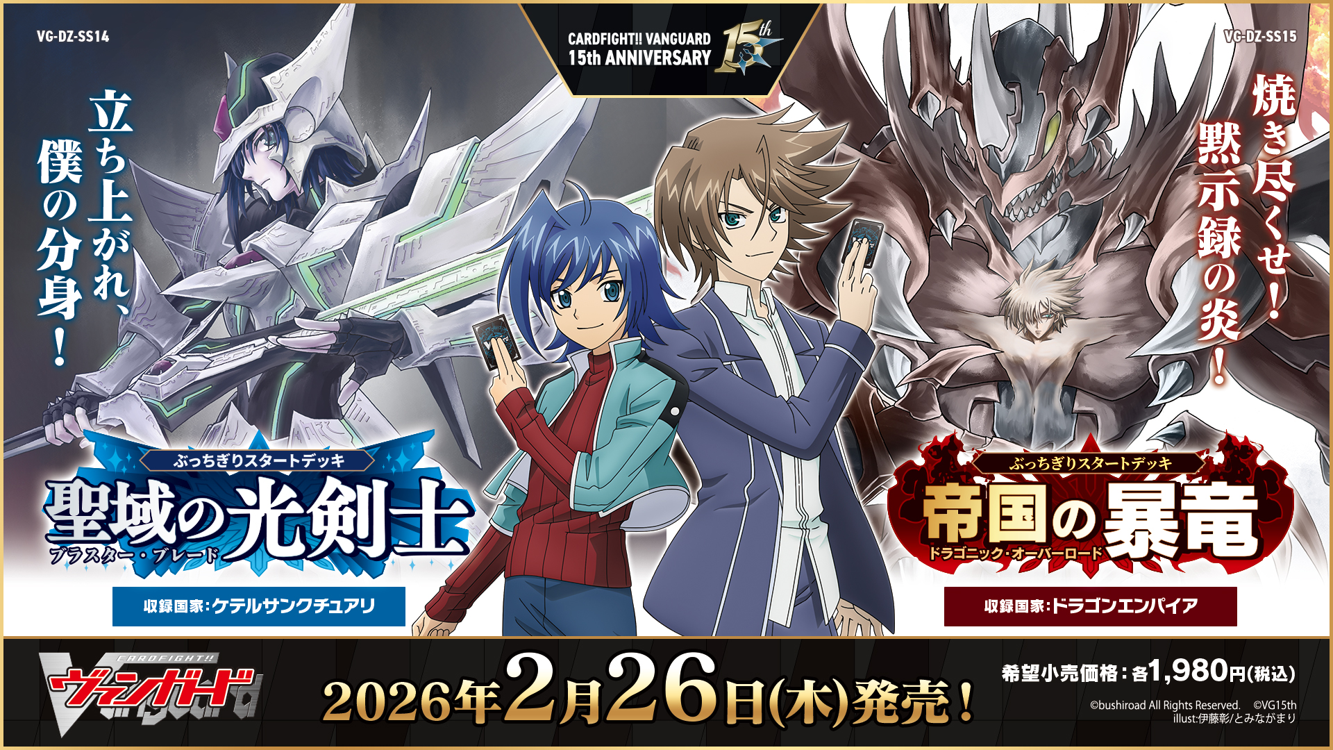 カードファイト!! ヴァンガードよりスペシャルシリーズ「ぶっちぎりスタートデッキ 聖域の光剣士」、「ぶっちぎりスタートデッキ 帝国の暴竜」が2月26日(木)発売!
