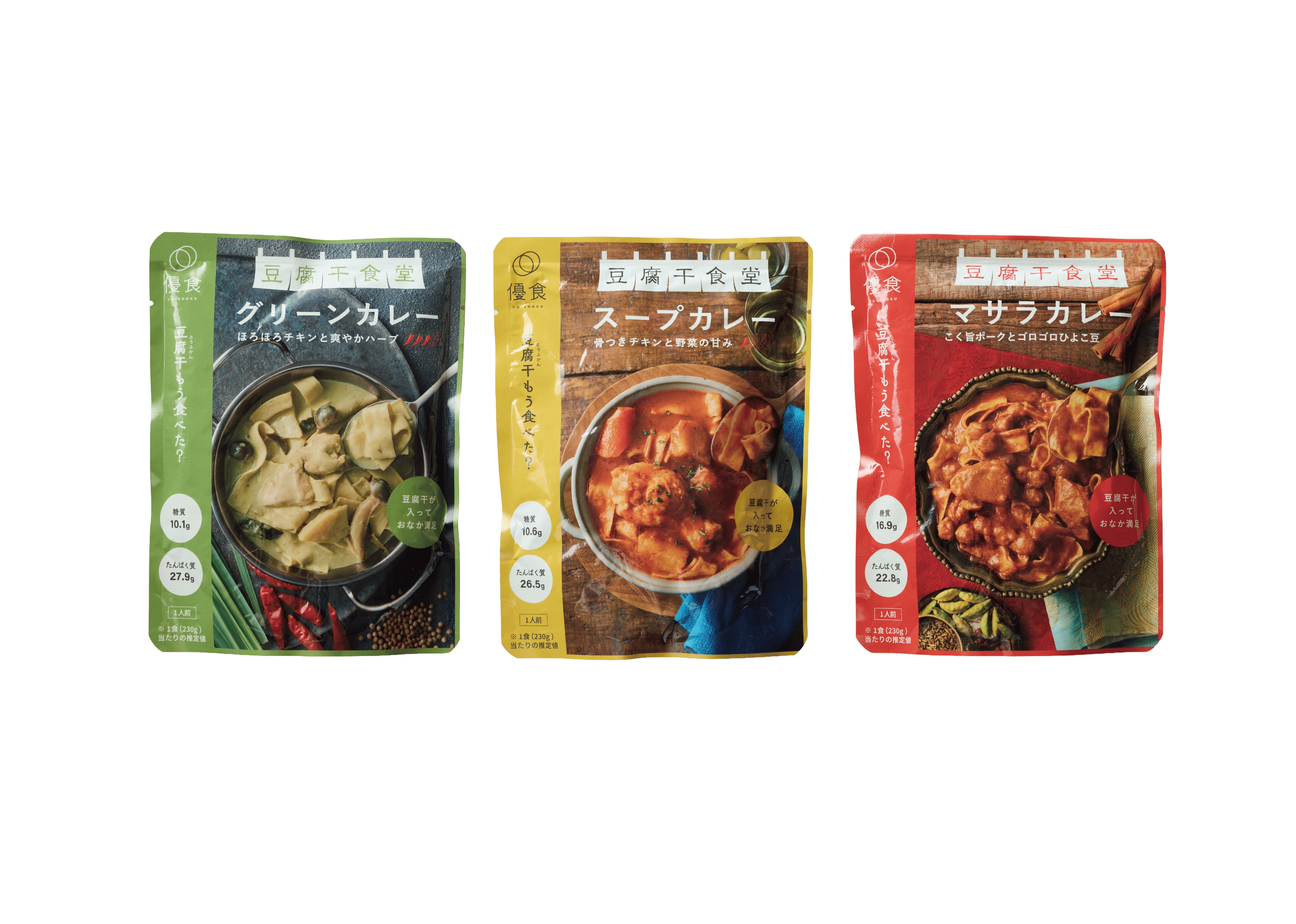 「豆腐干食堂」から“豆腐干で食べる”本格レトルトカレー3種類を新発売