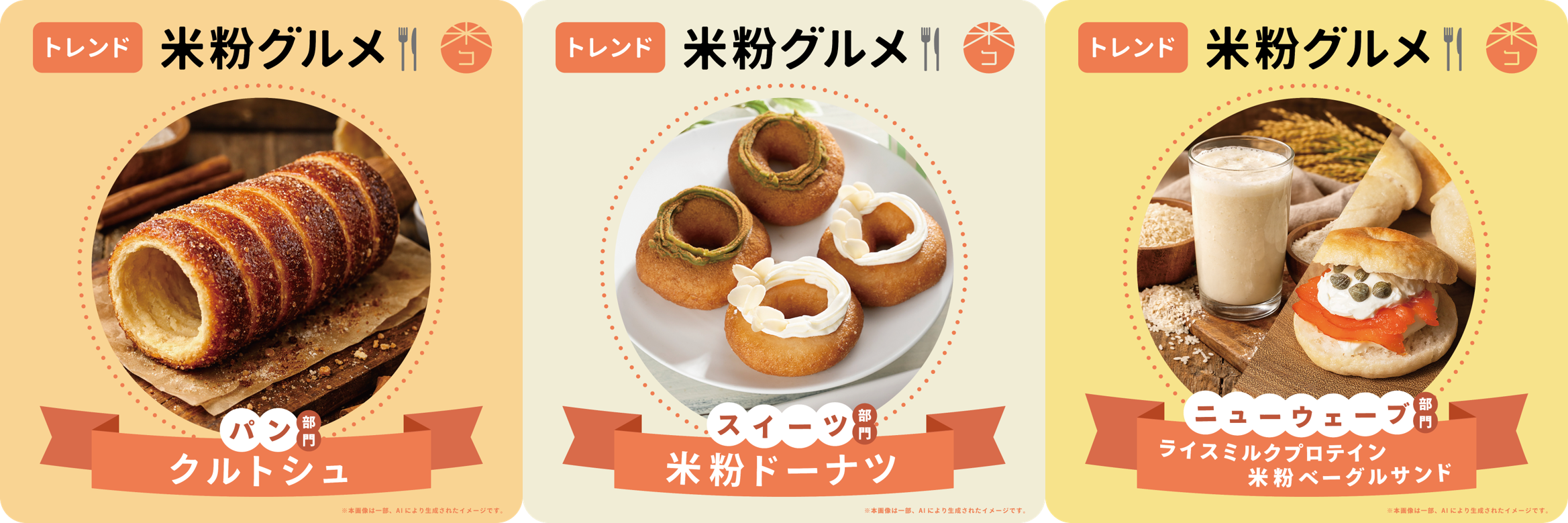 -2026年 トレンド米粉グルメ- パン部門:クルトシュ スイーツ部門:米粉ドーナツ ニューウェーブ部門:ライスミルクプロテイン・米粉ベーグルサンド -