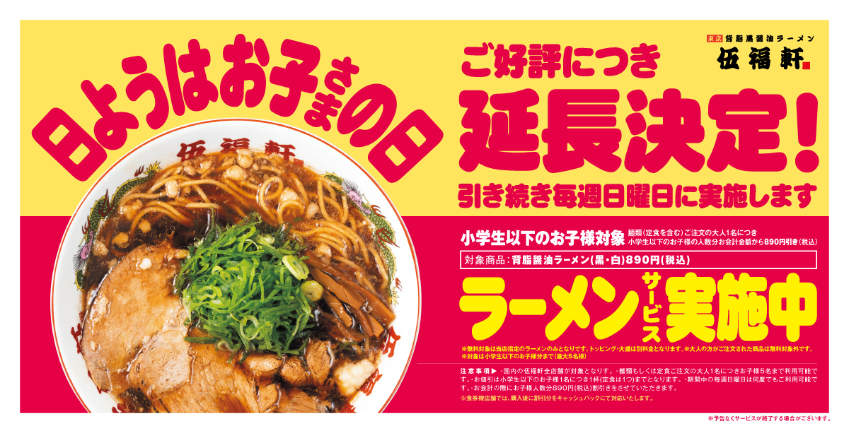 【伍福軒】毎週日曜日限定「日ようはお子さまの日」を延長実施! -