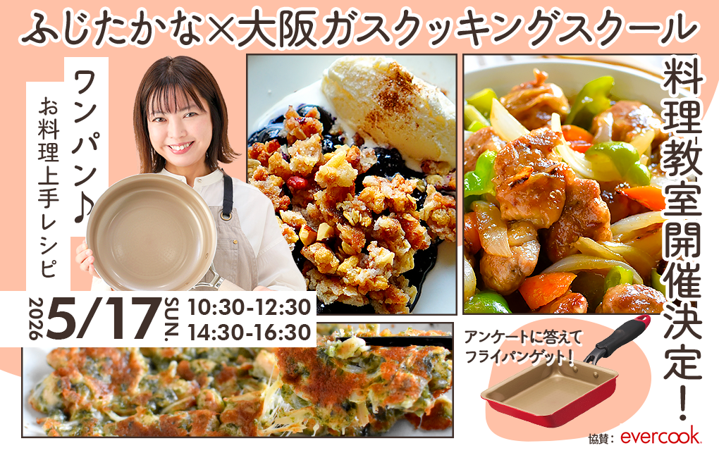 【料理研究家ふじたかな×大阪ガスクッキングスクール】特別コラボレッスン『ワンパン♪お料理上手レシピ』開催決定! -