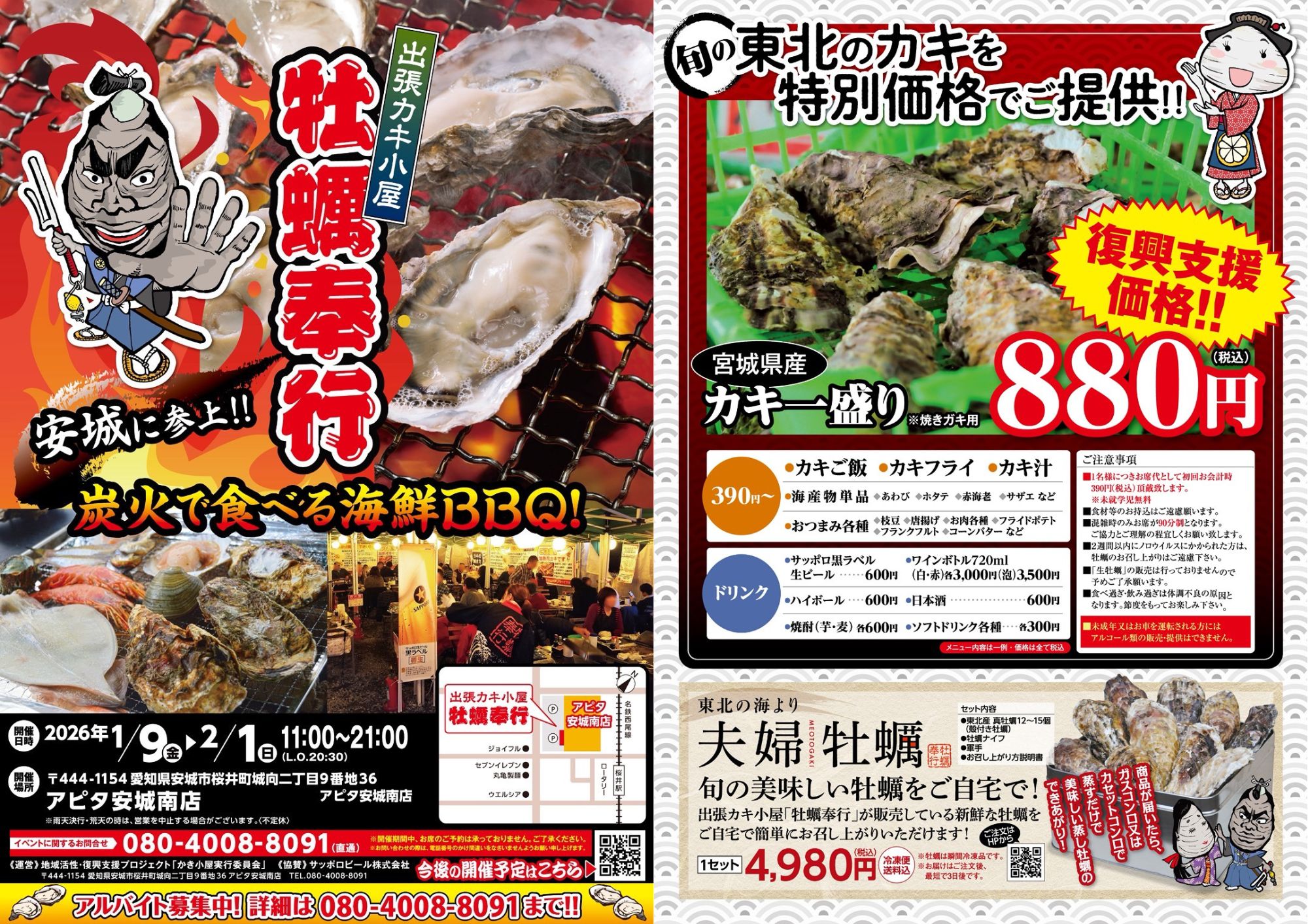 愛知県安城市に「出張カキ小屋」好評開催中!アピタ安城南店 駐車場内特設会場《 宮城県産殻付き牡蠣が一盛り880円!! 》
