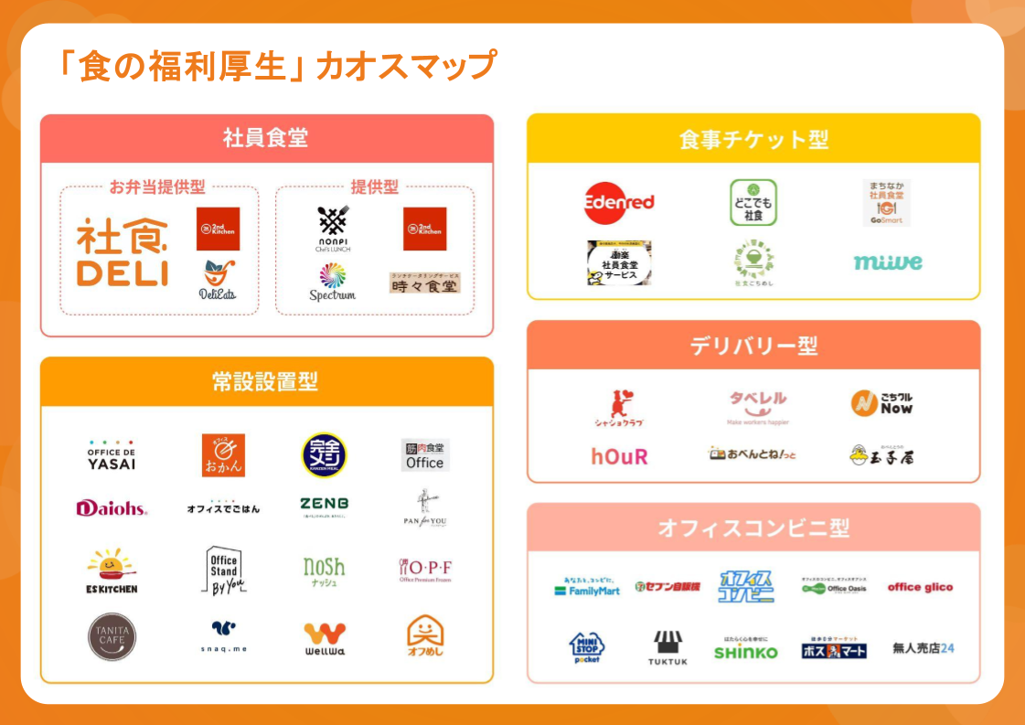 【2025年最新版】「食の福利厚生」カオスマップを公開。社員食堂から設置型・チケット型まで全46サービスを網羅 ~サービス選定に役立つ「企業・料金比較一覧リスト」付