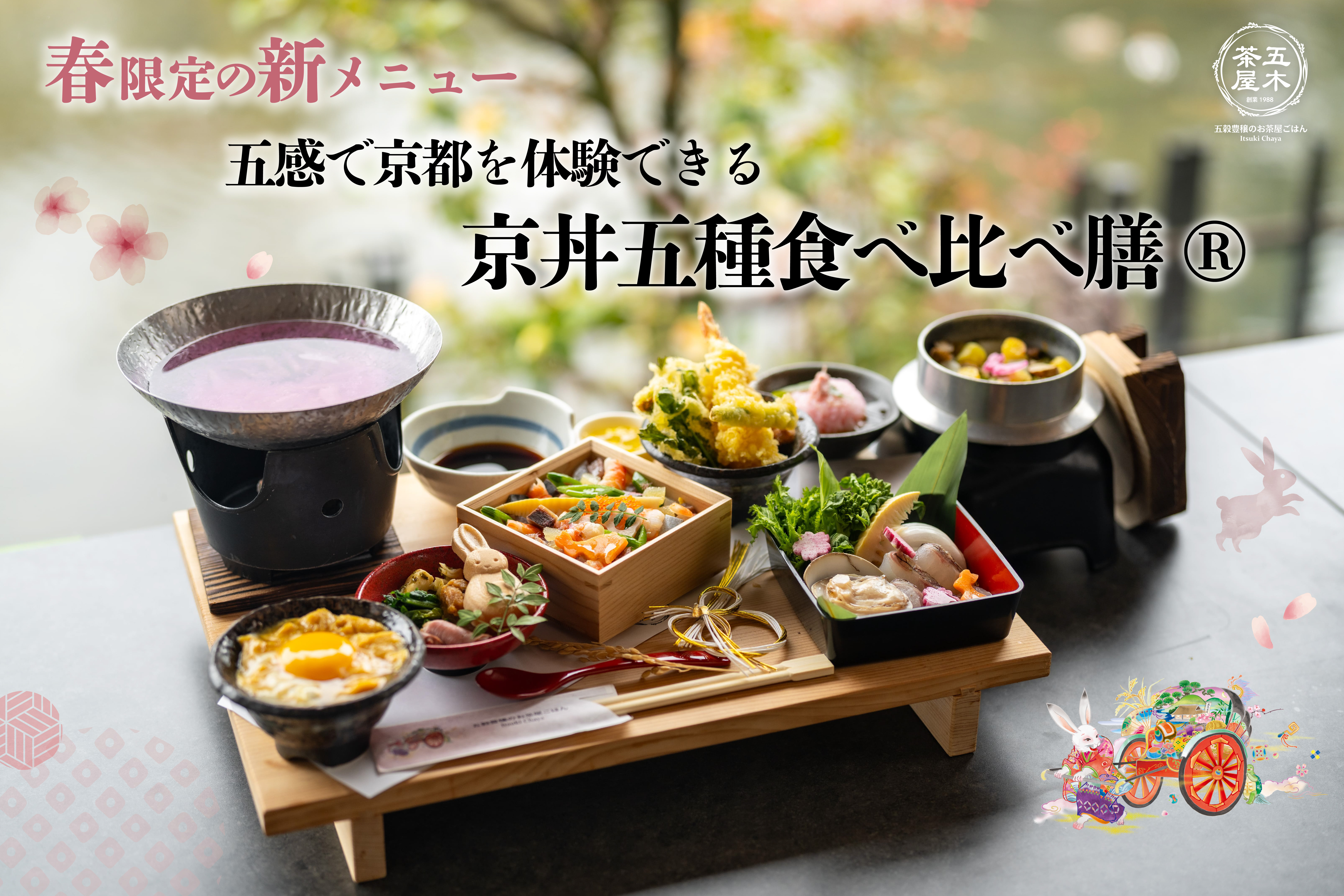 【2026年春】五穀豊穣のお茶屋ごはん(R)︎ 五木茶屋 嵐山本店にて、五感で京都の春を体験する新たな京丼「春の京丼五種食べ比べ膳(R)︎」が新登場!