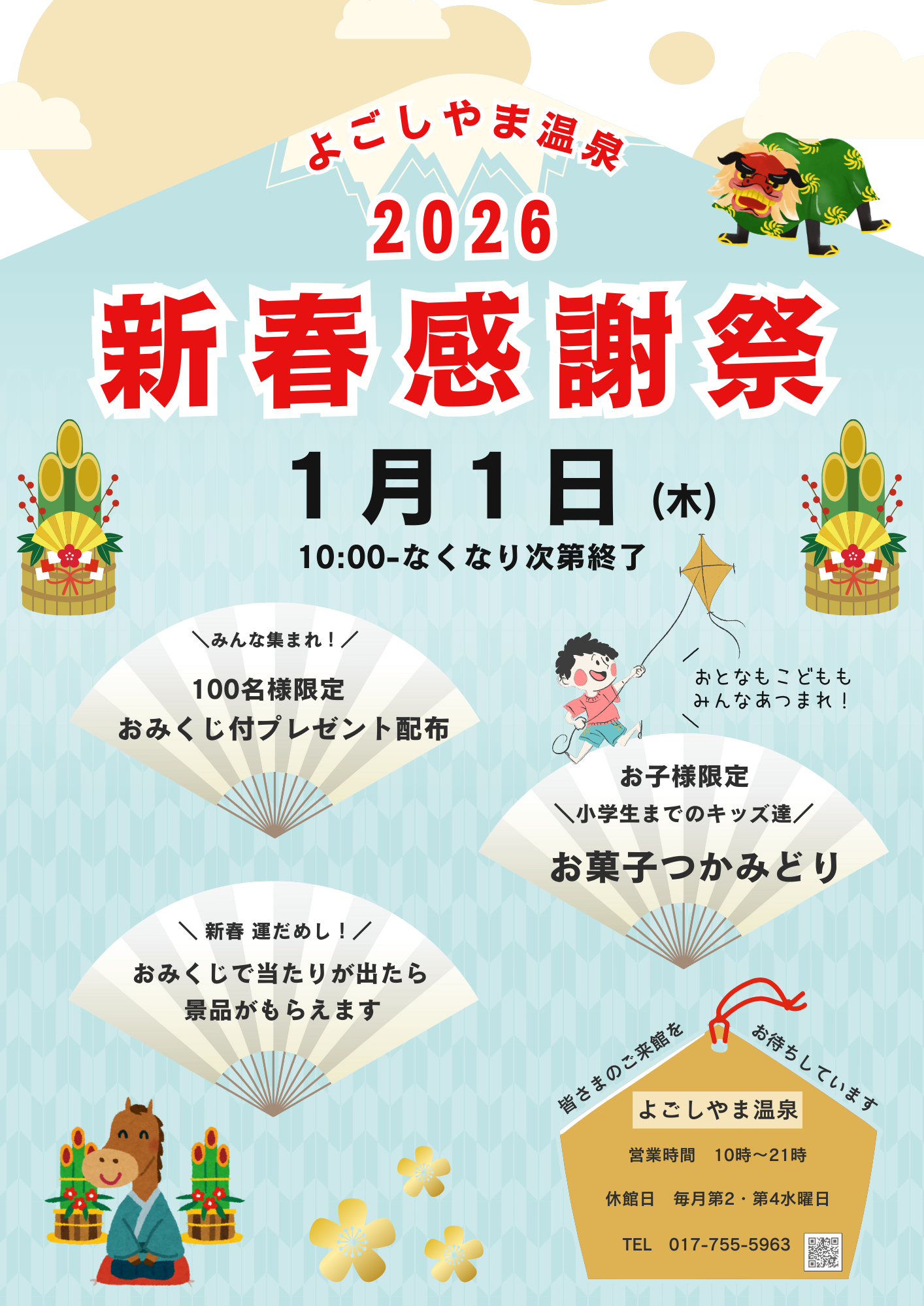 【青森県平内町】温浴施設 平内いきいき健康館よごしやま温泉 ☆新春感謝祭☆を開催します! -