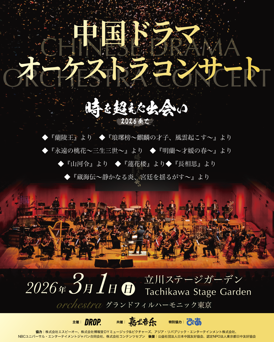 人気の中国ドラマの劇中歌(OST)をフルオーケストラ演奏で楽しめる企画『中国ドラマオーケストラコンサート~時を超えた出会い 2026・奏で~』を開催 -