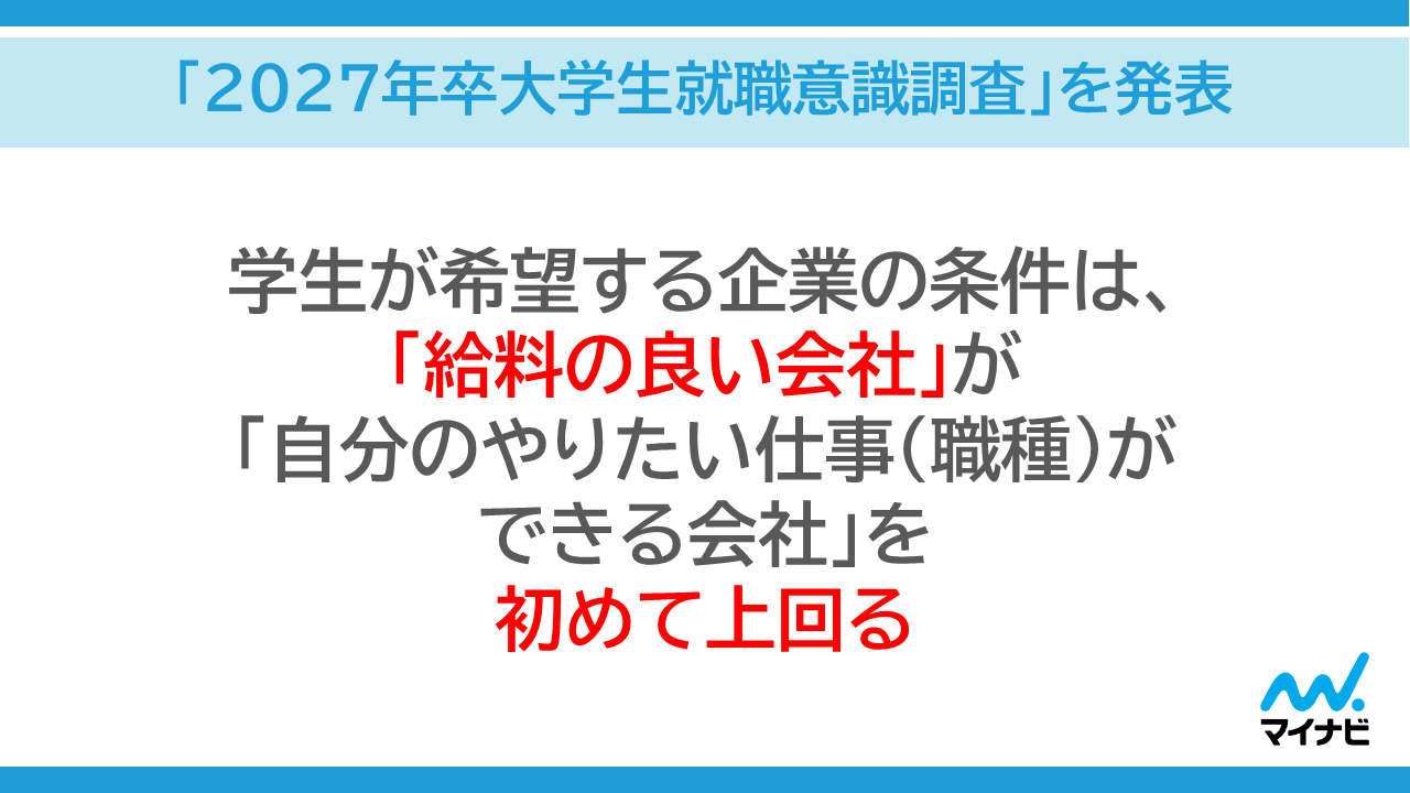 マイナビ、「2027年卒大学生就職意識調査」を発表 -