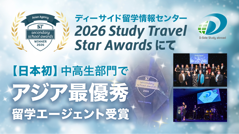 【日本初】中高生留学部門でアジアNo.1エージェントに!ディーサイド留学情報センター世界最高峰の留学アワード「ST Secondary School Awards 2026」にて日本勢初の大賞を受賞! -