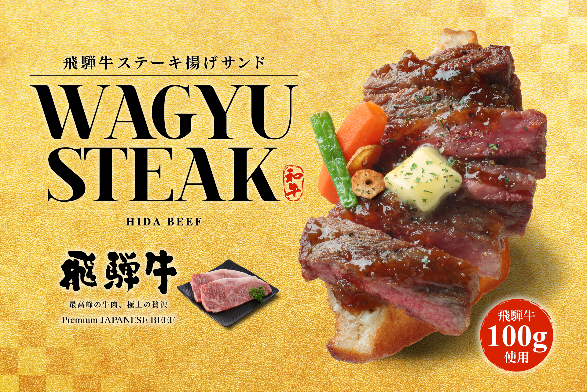 飛騨高山で、ステーキを片手で食べる。飛騨牛100g使用「飛騨牛ステーキ揚げサンド」、Age.3 飛騨高山店限定で登場 -