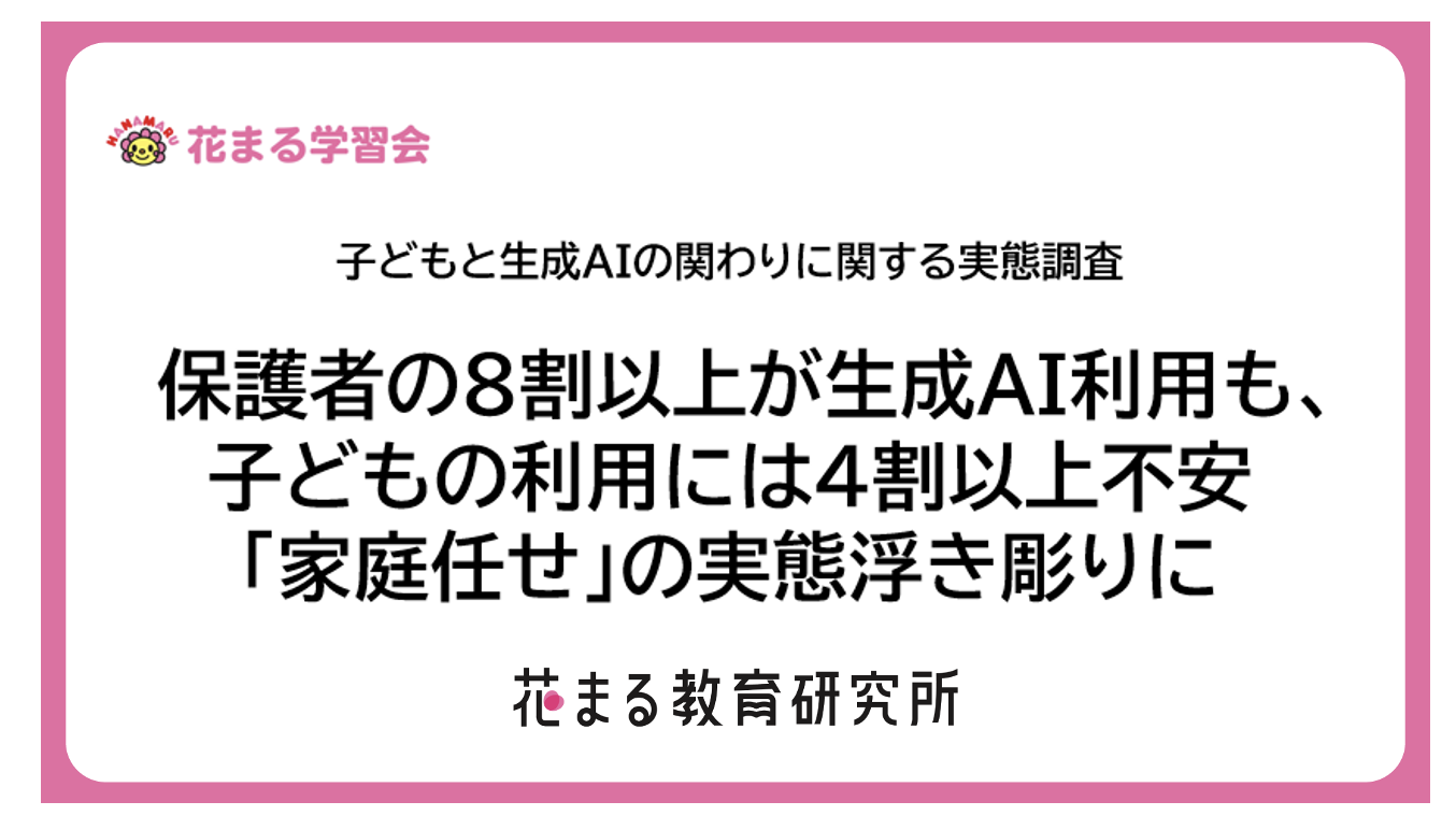 5割の親が子どもの生成AI利用に前向きも、約6割が使わせ方に悩み 不安の理由1位「AI依存」2位「思考力低下」3位「誤情報リスク」 【花まる教育研究所 子どもと生成AIの関わりに関する実態調査】