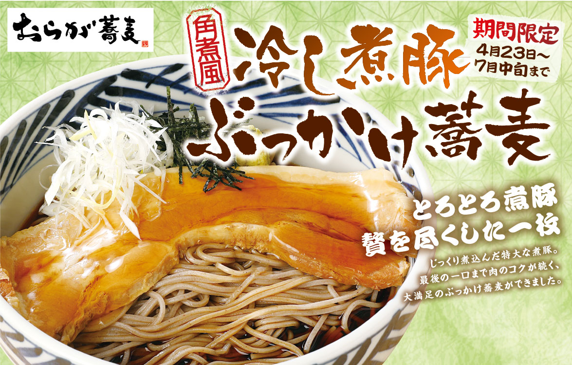 【特大煮豚がドン!】「おらが蕎麦」ボリューム満点の冷しそばが期間限定で登場