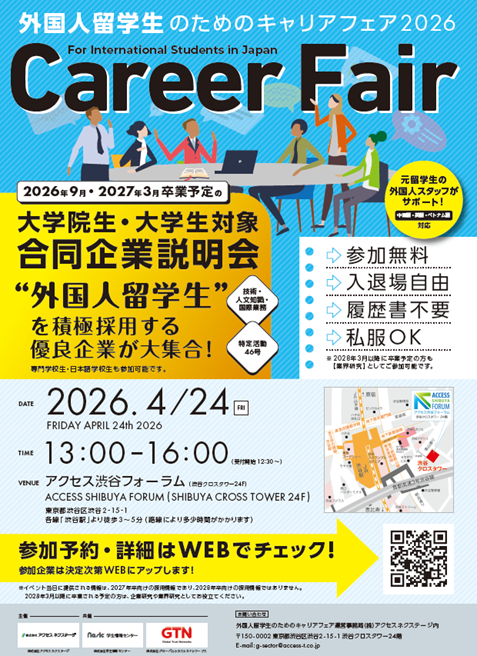東京・大阪で開催 外国人留学生のためのキャリアフェア2026のご案内 -