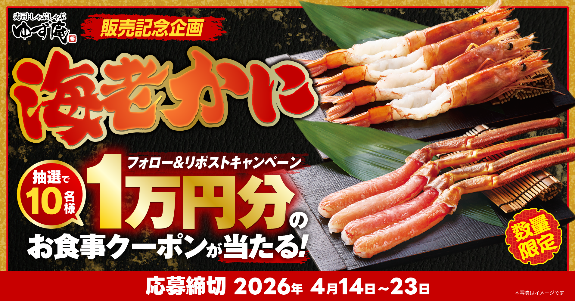 【ゆず庵】アプリクーポンが当たる!「有頭海老しゃぶ」「本ずわいがに かにしゃぶ」販売記念Xキャンペーンを開催 -