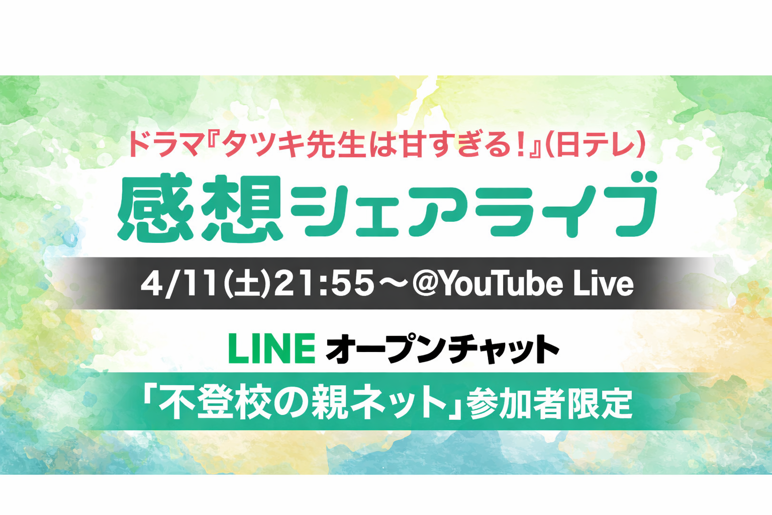 ドラマ『タツキ先生は甘すぎる!』感想シェアライブ開催!不登校の保護者と専門家が放送直後に語り合う特別イベント【4/11(土)21:55~@YouTube Live】 -