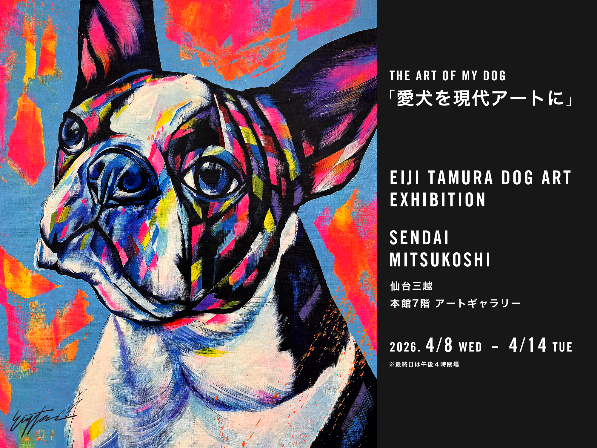 「あなたの愛犬を現代アートに!」仙台三越にて、4月8日(水)より「愛犬たちを色鮮やかに描く EIJI TAMURA DOG ART」オーダーイベント開催!特別な愛犬を永遠のアートに。 -