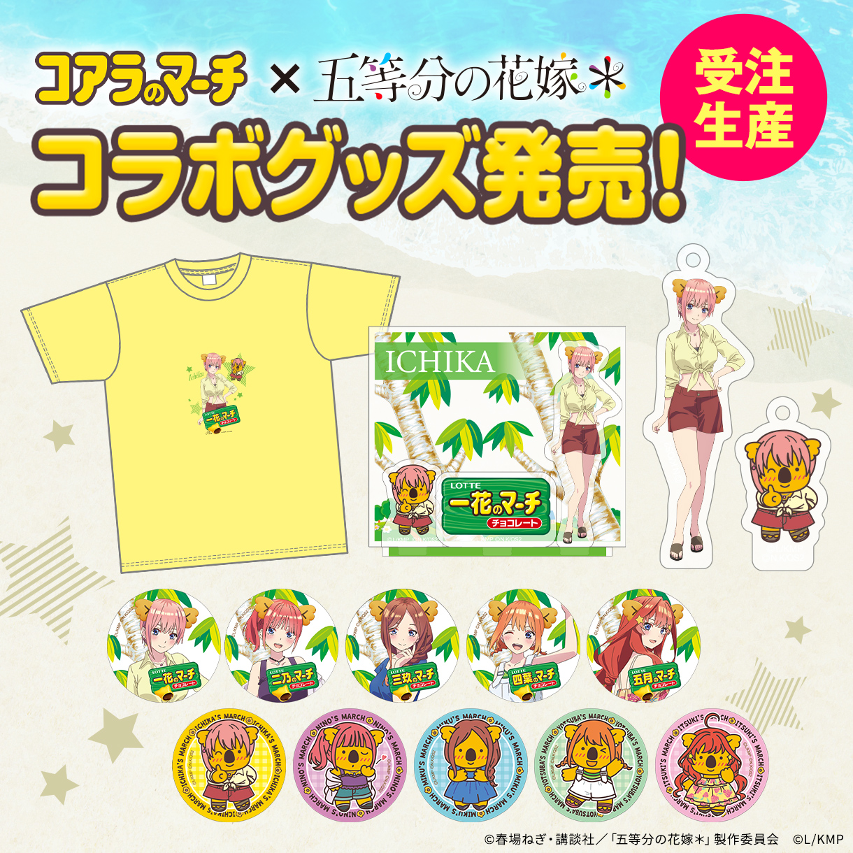 前回は初日で完売した大人気コラボ第二弾が登場!TVスペシャルアニメ『五等分の花嫁*』×『コアラのマーチ』ロッテオンラインショップ限定グッズ全4種 1月19日(月)正午より期間限定・受注生産で販売