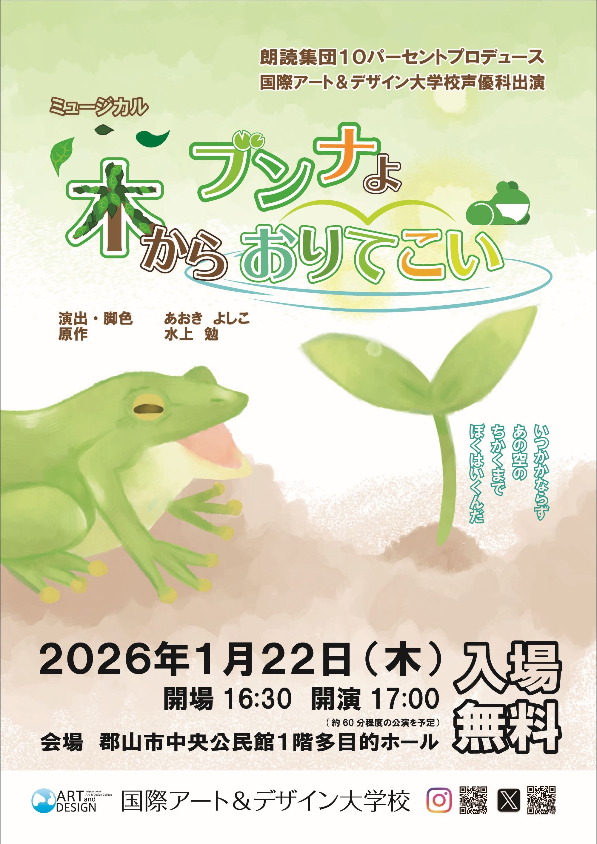 国際アート&デザイン大学校 声優科卒業・修了公演『ブンナよ!木からおりてこい』開催のご案内 -