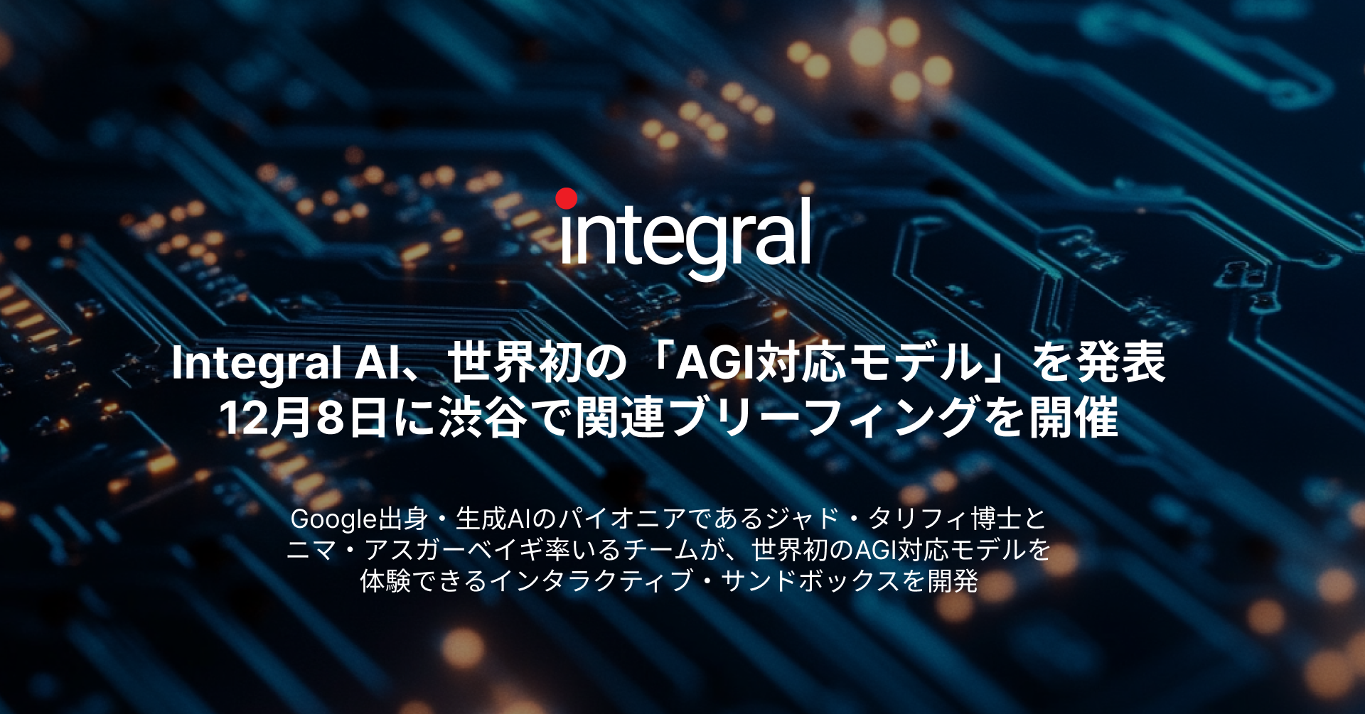 Integral AI、世界初の「AGI対応モデル」を発表。12月8日に渋谷で関連ブリーフィングを開催 -