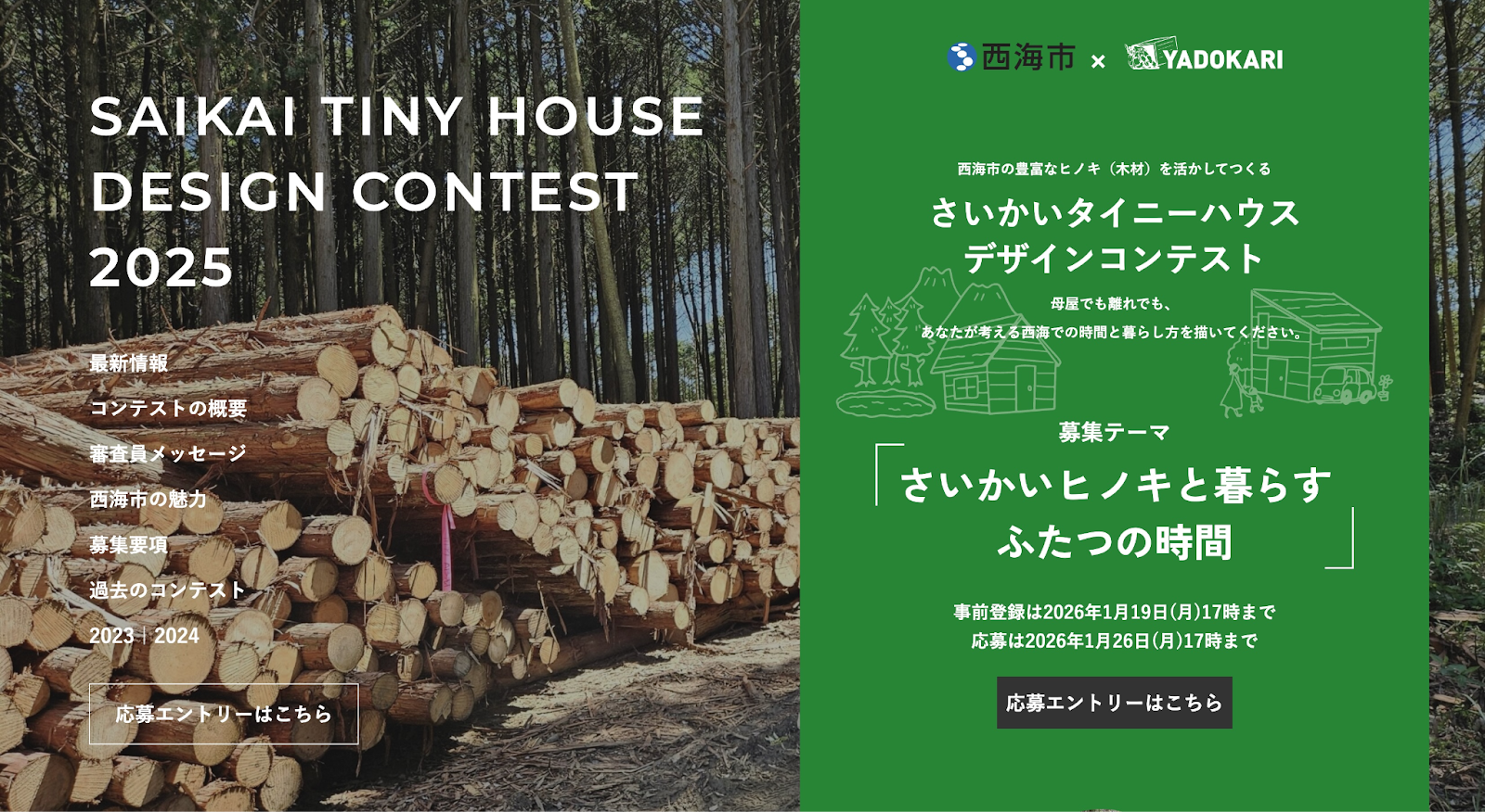 【募集開始!】西海市のヒノキを活かした時間と暮らしを描く「さいかいタイニーハウスデザインコンテスト2025」開催!(事前登録は1月19日まで、応募は1月26日まで)【西海市×YADOKARI】 -