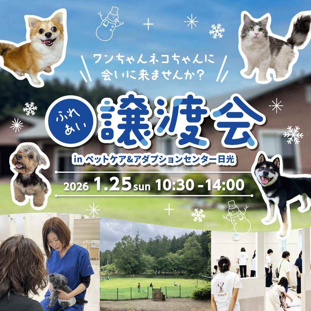 2026年1月25日(日)ペッツファーストグループ「ふれあい譲渡会」開催のお知らせ in ペットケア&アダプションセンター日光 -