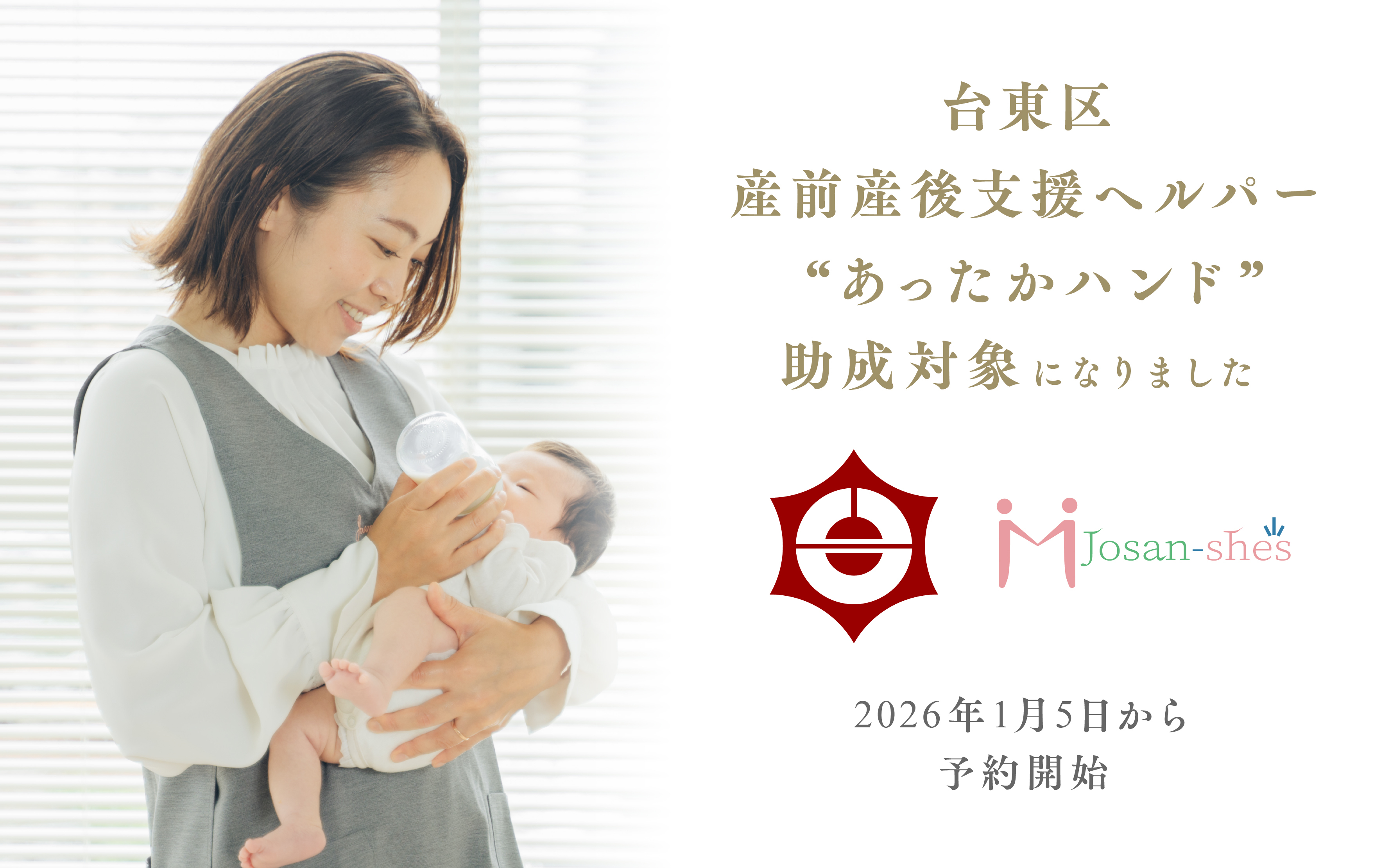 ジョサンシーズの提供するベビーシッター事業が、台東区の産前産後支援ヘルパー“あったかハンド”助成対象へ -