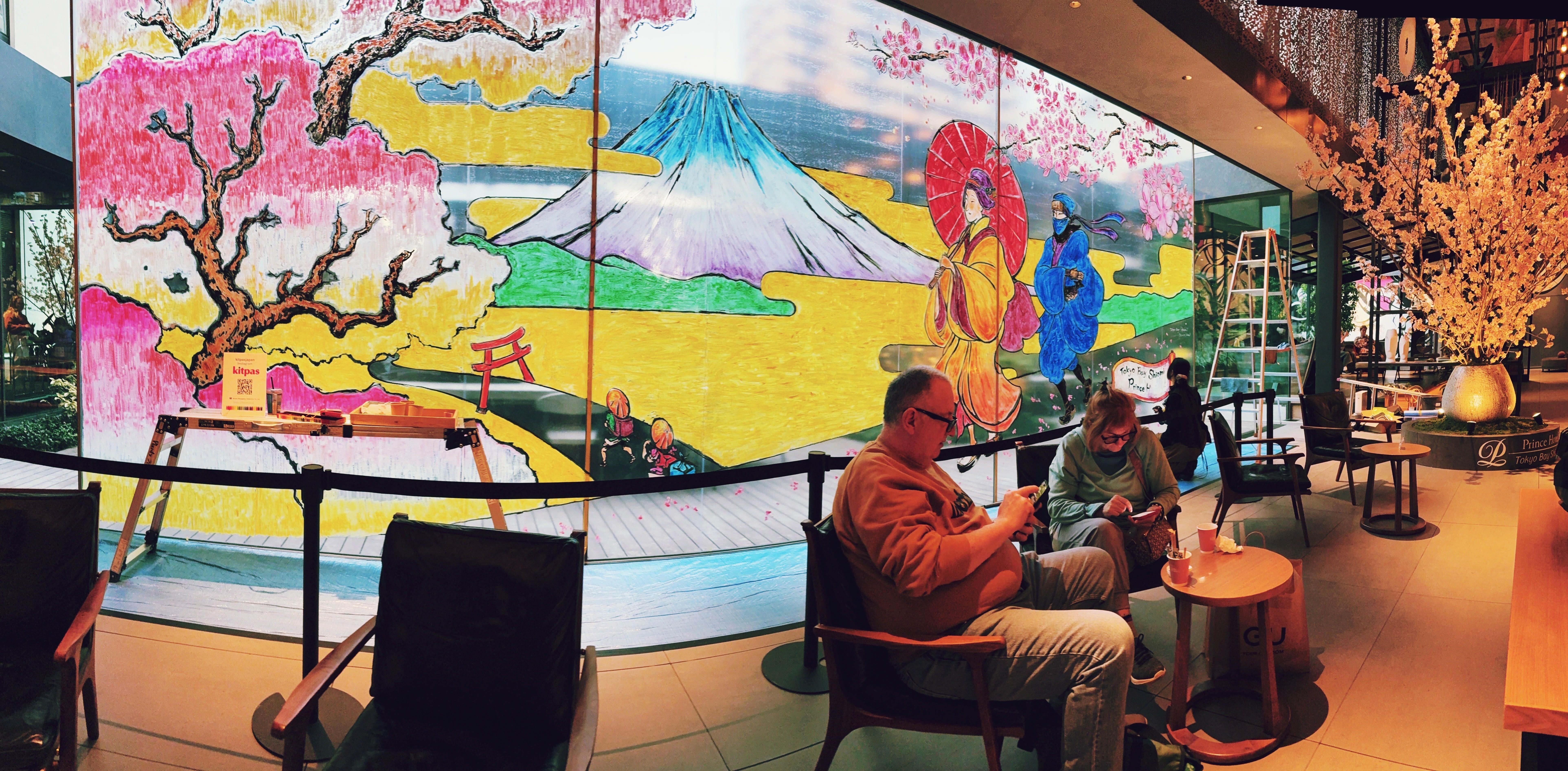 【インバウンド客が絶賛】「キットパス」で描く日本の春に海外ゲストが釘付け!東京ベイ潮見プリンスホテルでのライブドローイング第4弾『爛漫 -Ranman-』実施報告