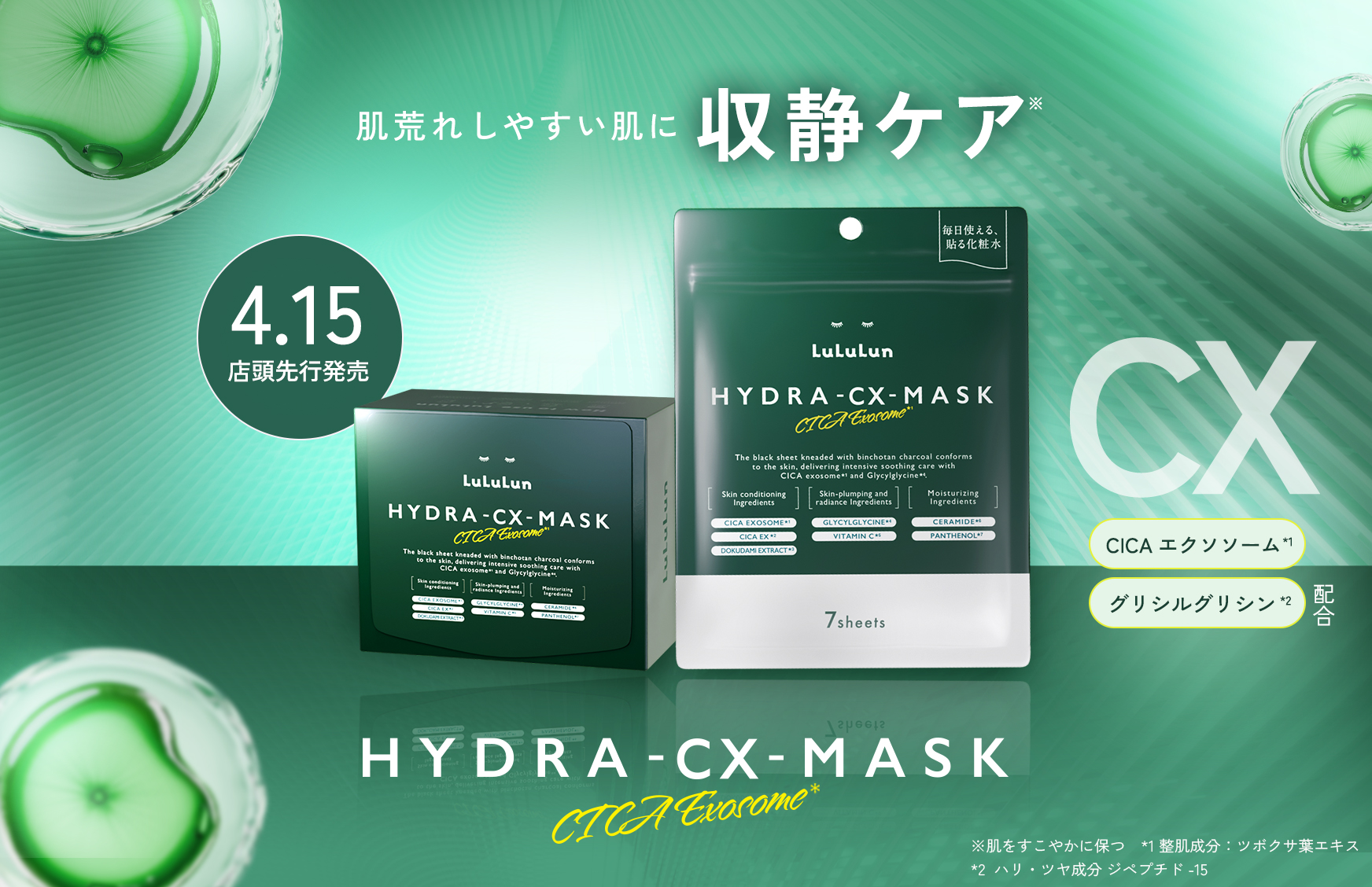 フェイスマスクブランドNo.1のルルルンから「収静(しゅうせい)ケア」を叶えるハイドラシリーズの新作誕生。繰り返す肌トラブルに、ダブルCICA×グリシルグリシン配合「ルルルン ハイドラ CX マスク」