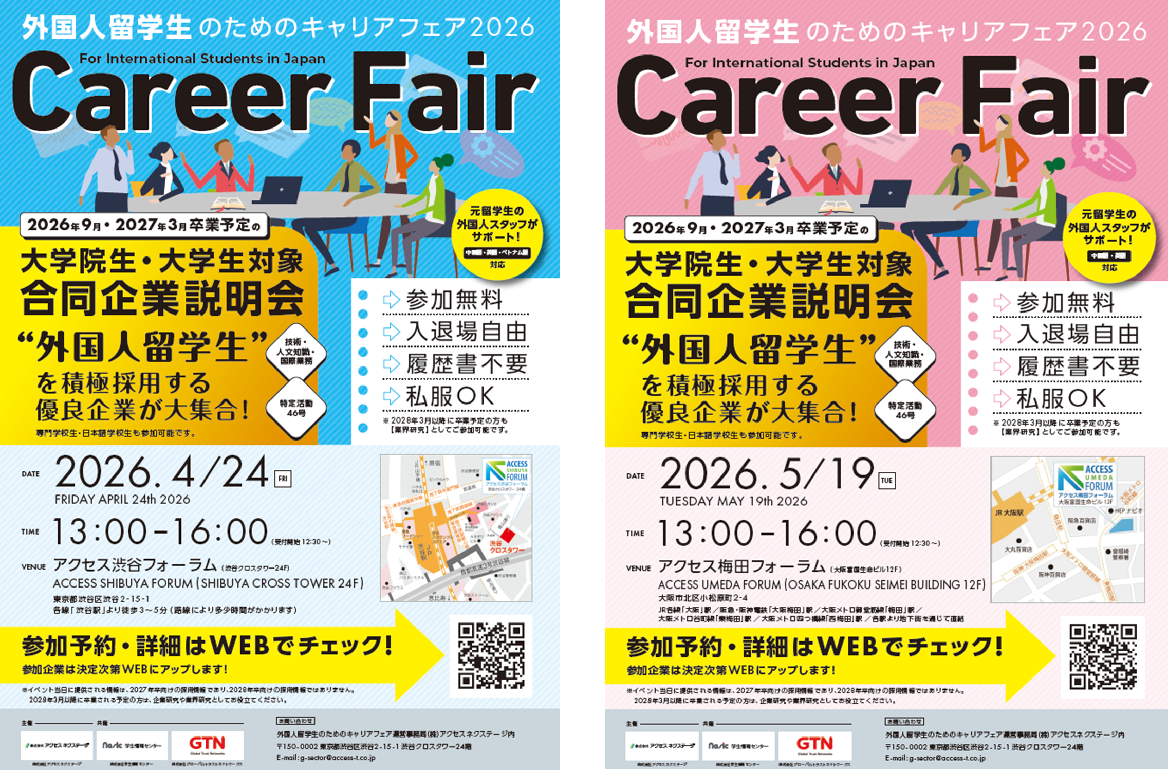 「外国人留学生のためのキャリアフェア2026」を東京・大阪にて開催~学生情報センター・グローバルトラストネットワークスと共催~