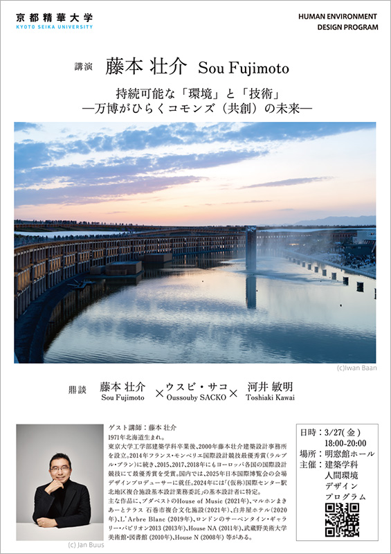 [京都精華大学]世界で活躍する建築家の藤本壮介氏をお招きした基調講演「持続可能な「環境」と「技術」 -万博がひらくコモンズ(共創)の未来-(鼎談:藤本壮介×ウスビ・サコ×河井敏明)」を開催