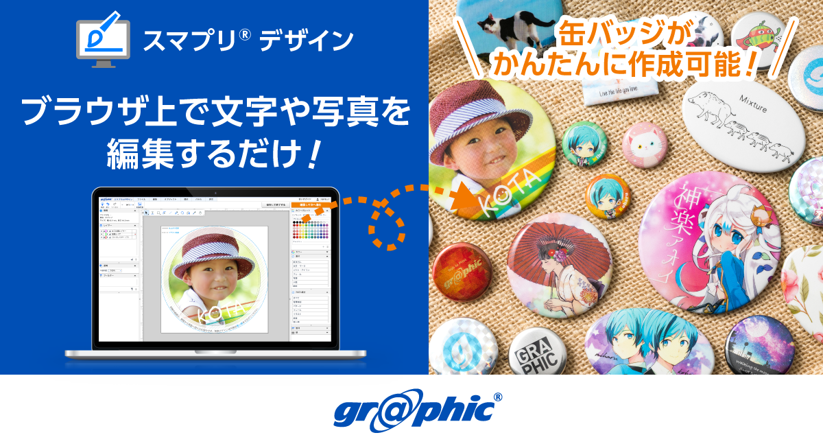オリジナルの缶バッジ制作がよりお手軽に!ネット印刷のグラフィックが「スマプリ(R)デザイン」に缶バッジを追加。
