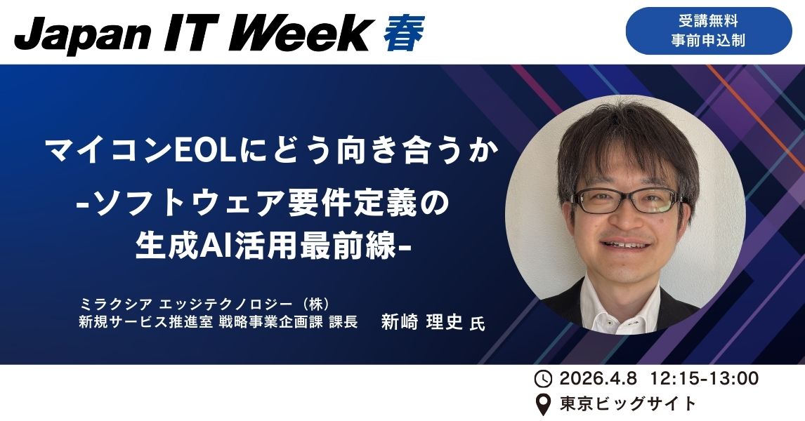 マイコンEOL時代の“要件定義”をどう変えるか Japan IT Week春で、ミラクシア エッジテクノロジーが生成AIを活用した「マイコン置き換え」最前線を解説
