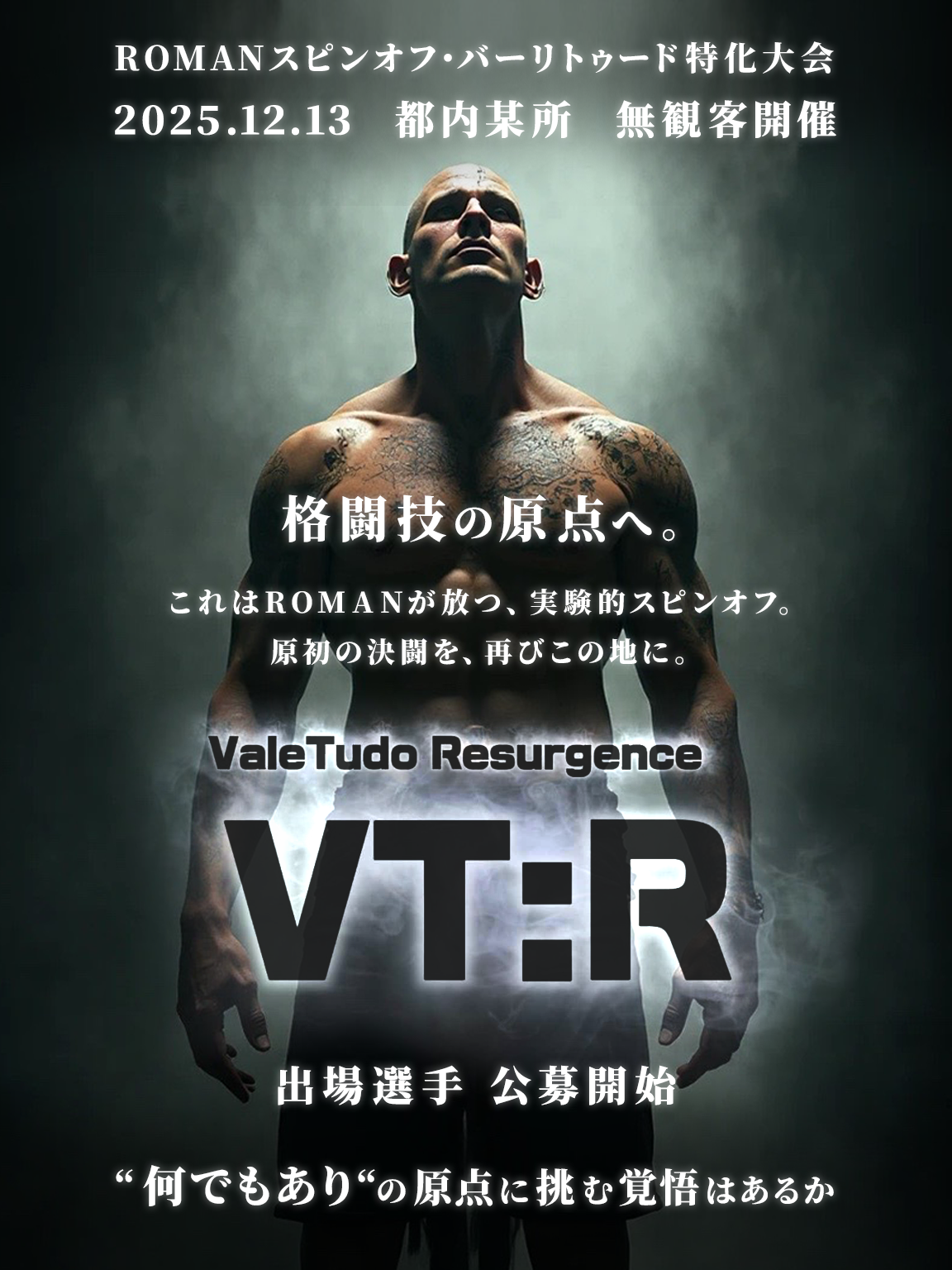 ルールなき闘い、再び。ROMAN、“バーリトゥード復権”を掲げた新大会「VT:R ZERO」開催決定!出場者募集! -